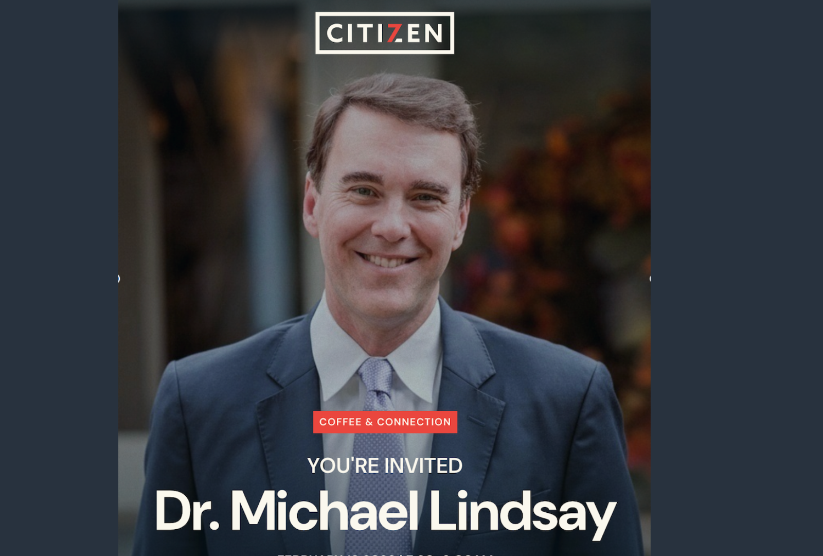 Join us for our first Citizen 7 Coffee & Connection of 2026 on Wednesday, February 18th, from 7:30–9:00 AM at Meridian Hills Country Club. We’re excited to welcome Dr. Michael Lindsay, President of Taylor University, as our guest speaker.
